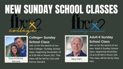 New Sunday School Classes Launching November 23rd!