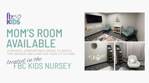 FBC Kids has a Mom's Room available for you and baby to step into a calm, private space while staying part of the service.
