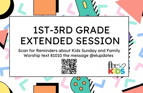 1st-3rd Extended Session during the Worship Service: 10:45am on Sunday (1st-3rd grade)