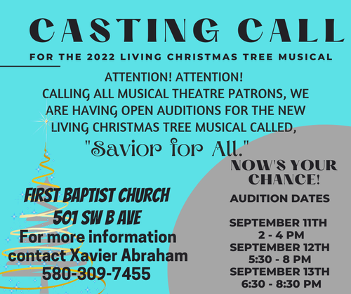 Audition Location is 501 SW B Ave. Lawton Ok. 73501