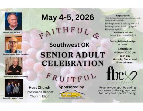 If you would like to register to attend, sign-up sheets are available in Adult Sunday School Classes and the Welcome Center!
